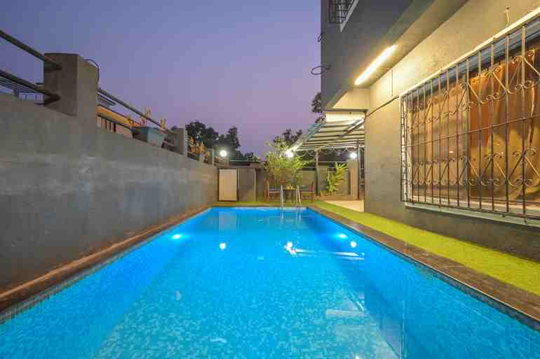 This villa has air conditioning, kitchen and private pool. Wi-Fi & Music System. Smart 52 inch TV with Tata sky in Hall. Fully Equipped Kitchen (Fridge, Gas and Stove, Microwave, Aqua-Guard), Car Parking for 8 cars, Caretaker on site, Generator Back up, Outside seating area, Barbecue Facility, Indoor Games - Pool Table, Table Tennis 🎾, Carrom, Ludo, Snake & ladder, Chess Uno & Playing Cards, Beautiful Garden.